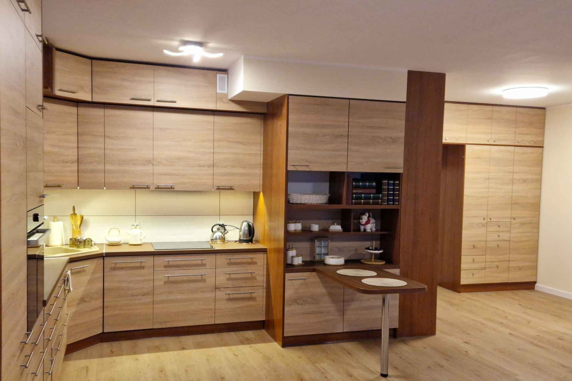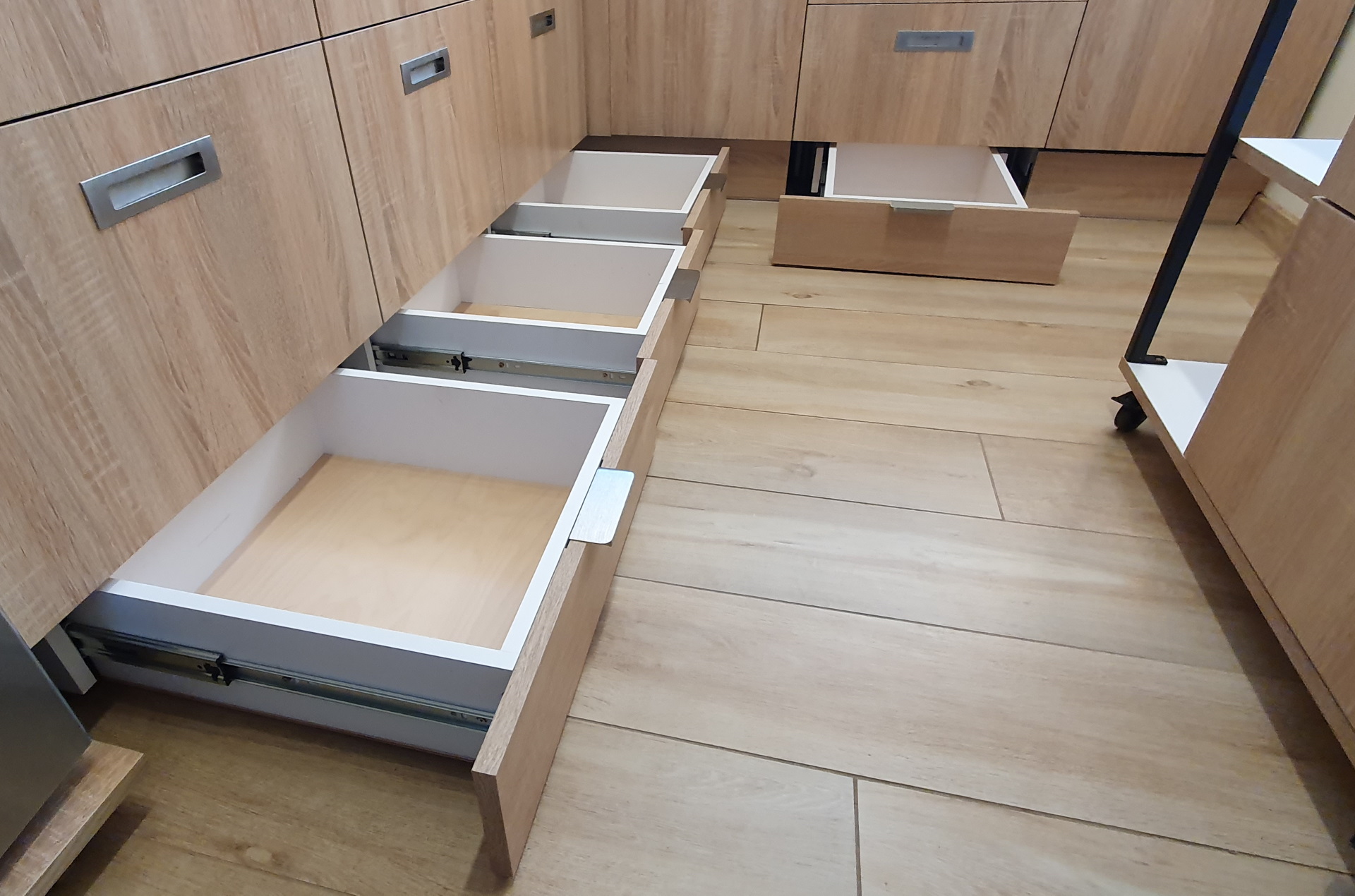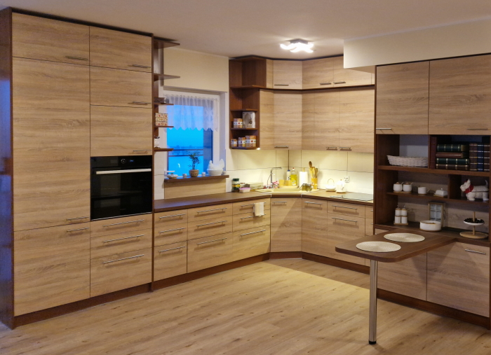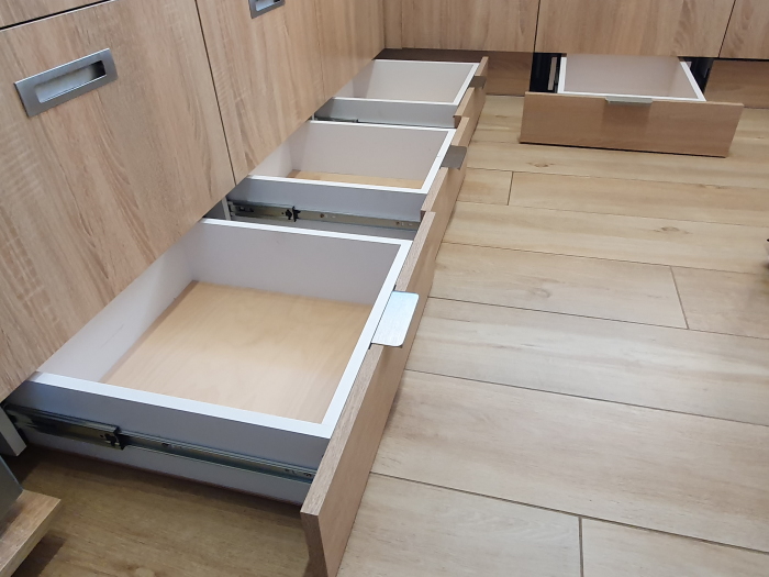 • wysokiej jakości okucia i akcesoria (np: zawiasy, domykacze, prowadnice szuflad, listwy oświetleniowe LED, kosze cargo)