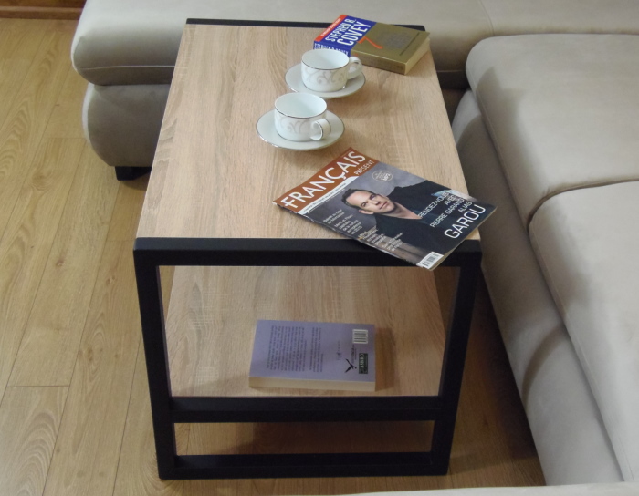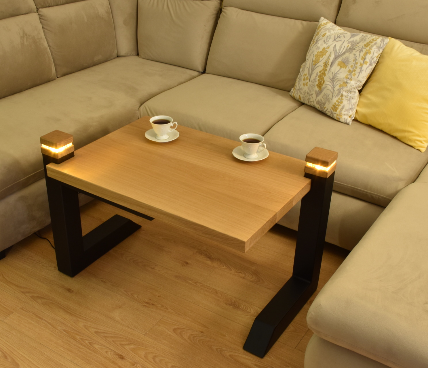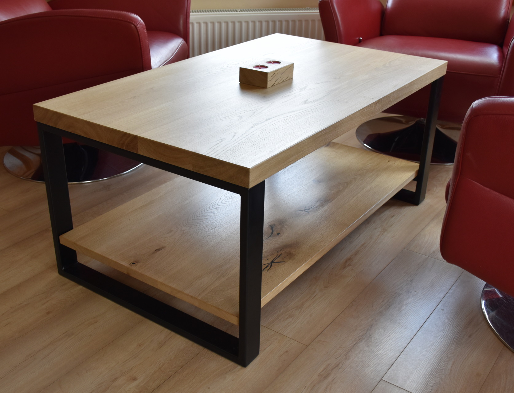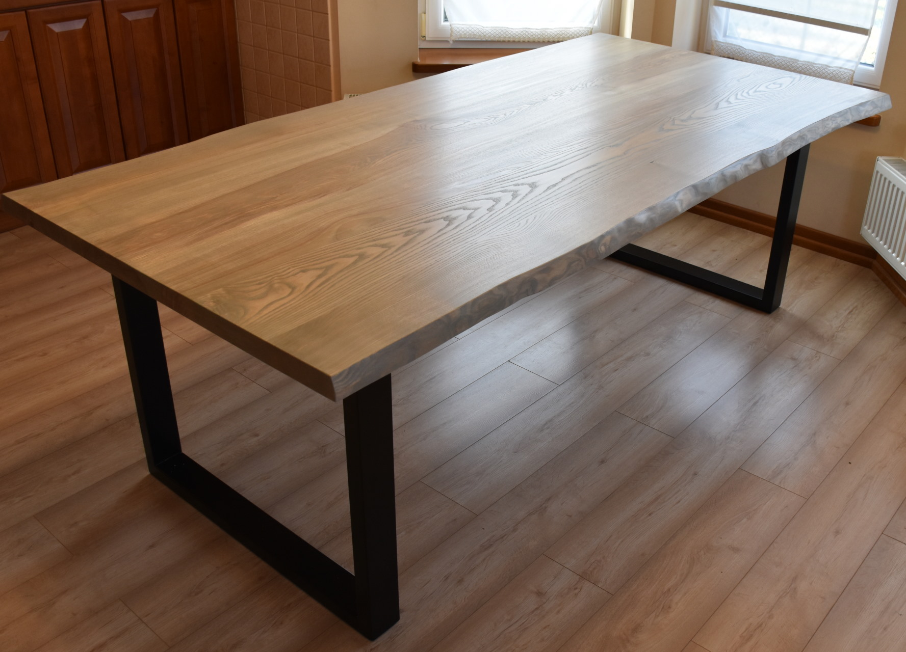 Tworzymy niepowtarzalne stoły i stoliki z blatami z drewna naturalnego, np. dębiny, z nogami wykonanymi z profili stalowych malowanych proszkowo.