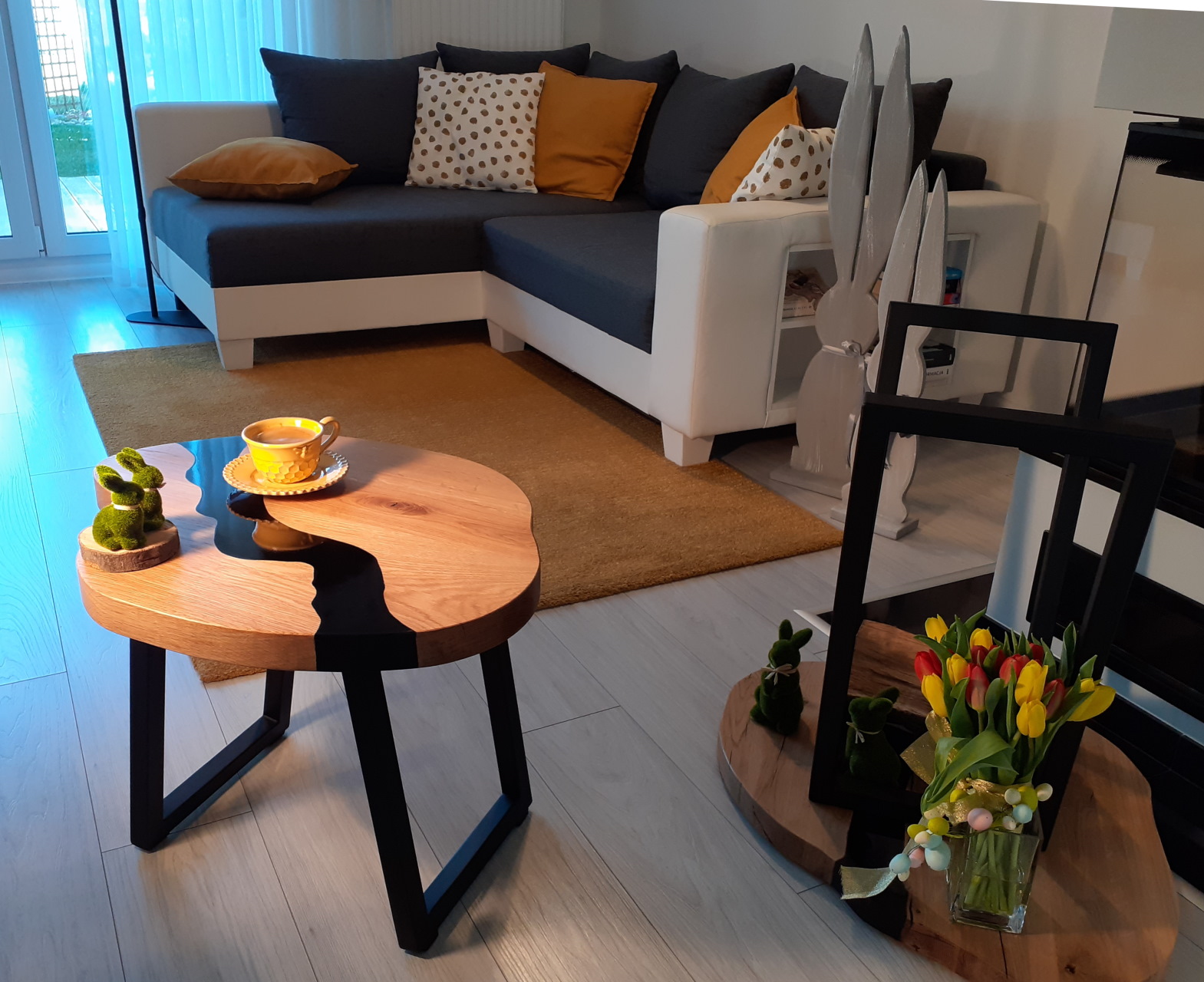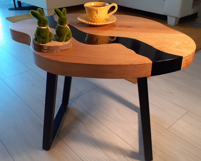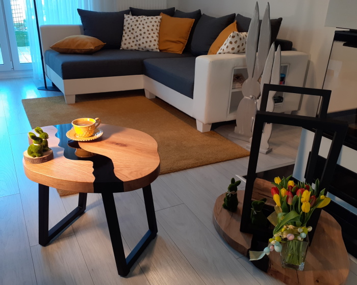Nie boimy się nietypowych form - drewno łączymy z żywicą, podkreślając w ten sposób usłojenie deski.